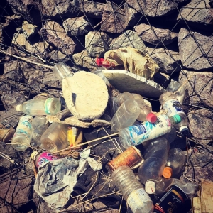 廃タイヤ、ステレオ、貝殻、空缶、ビニール類、全て川の中から拾い上げた…