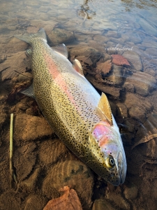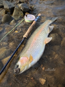 思いもしなかった良型のニジマスの凶暴なファイトを存分に楽しんだ…
