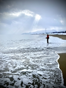 お初のポイントなので強風だが、竿を振ってみた…