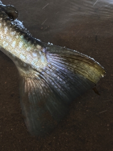 最後の最後までパワー全開のアメマスをティペットが切れるのを覚悟して強引に上げて最後はハンドランディング成功💦