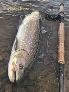 勇ましい顔だぁ…しかも更に太いわ〜やっぱりサイズアップじゃないか?計測してみると…75㎝…ブリンブリンのアメマスだった…