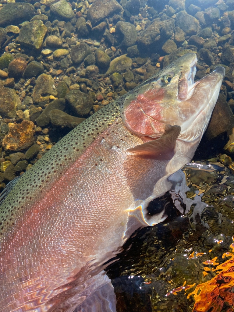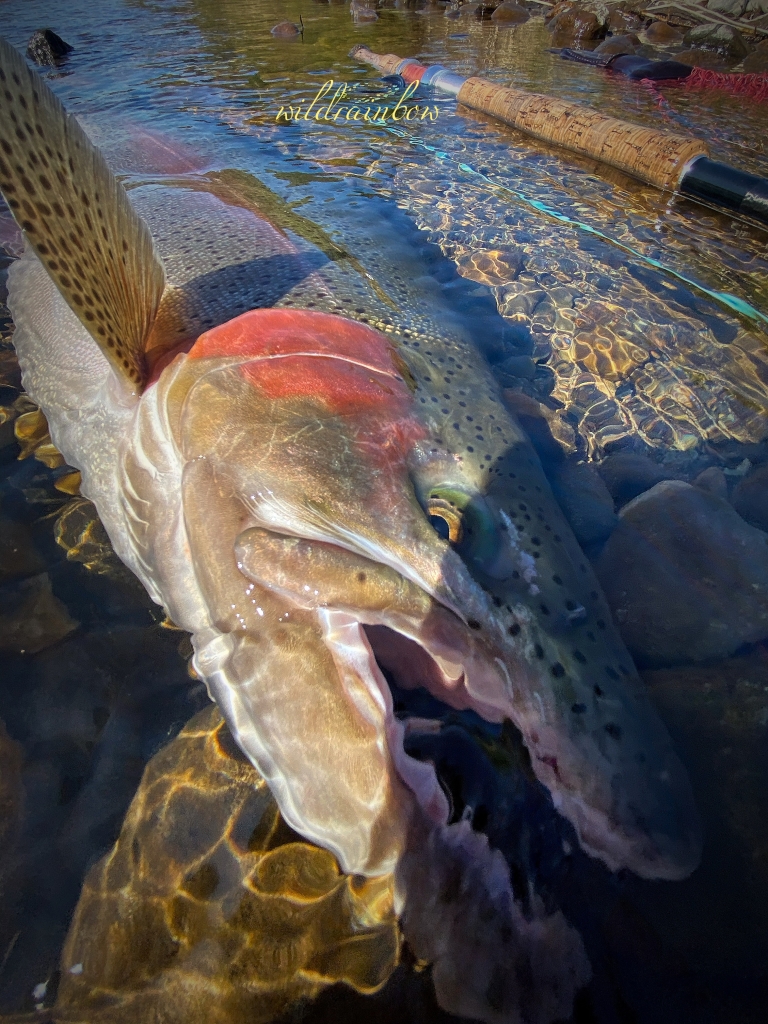 なんて凶暴な顔してるんだ…… そんな顔とは裏腹に、綺麗な体で体高も素晴らしい…何より骨格が立派で感動した……見事なワイルドレインボーだった…… 次は必ず70.80オーバーで会おうとリリースした… いつものマルボロを1本つけて… ……フゥ〜〜〜〜〜…… いい日に... -